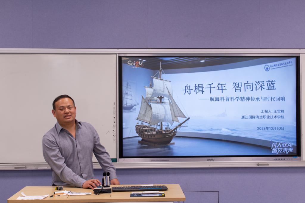 我校航海工程学院王雪峰老师受邀参会,在“从沈括到人工智能科学精神的时代回响”、“AI赋能传统产业的探索”等分论坛中积极参与研讨,并作“舟楫千年智向深蓝航——海科普中科学精神传承与时代回响”主题分享,介绍了我校借助丰富的航海科普活动普及航海科学知识、传播科学思想、弘扬科学精神的相关做法,得到与会专家学者的肯定。