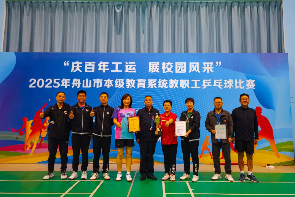 11月7日至9日,由舟山市教育工会主办的“庆百年工运,展校园风采”2025 年市本级教职工乒乓球竞赛在我校体育馆精彩落幕。我校教职工代表队凭借精湛球技与顽强斗志,一路过关斩将,最终斩获混合团体亚军与优秀组织奖,在全市教育系统面前展现了海运教职工的竞技风采与团结精神。
