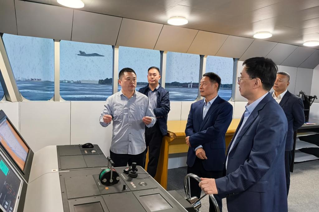 在江苏航运职业技术学院,学校党委书记薛杨、校长吴丽华、副校长刘芳武等领导接待了调研组。调研组参观了学校的360°船舶操纵模拟中心、轮机模拟器、航海文化馆等,并就航海与船舶海工类国家级专业群建设与“双师型”师资培养的标杆经验等内容展开座谈研讨。