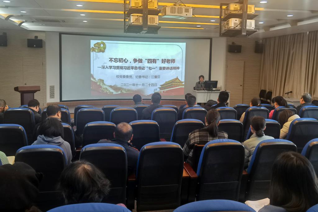 江爱芬书记以《不忘初心,争做“四有”好老师》为题,围绕习近平总书记“七一”重要讲话精神、新时代全面从严治党工作要求、推进清廉学校建设重要意义、筑牢思想防线,守住纪律底线等方面进行了讲述。党课通过一个个警示案例明确了从严治党的必要性,内容详实,讲述深入浅出。