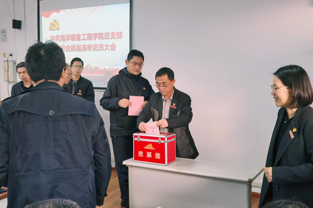 大会在庄严的国歌声中拉开帷幕。会上,回顾总结了上一届总支部委员会党建工作成果,明确了下一步主要工作任务。随后,根据《中国共产党基层组织选举工作条例》等规定要求和选举议程,全体党员以无记名投票的形式,选举了罗秀峰、李海波、於国元、何琪、俞凯耀、蒋仲仁、卓宏明等7位同志为海洋装备工程学院党总支新一届委员会委员。