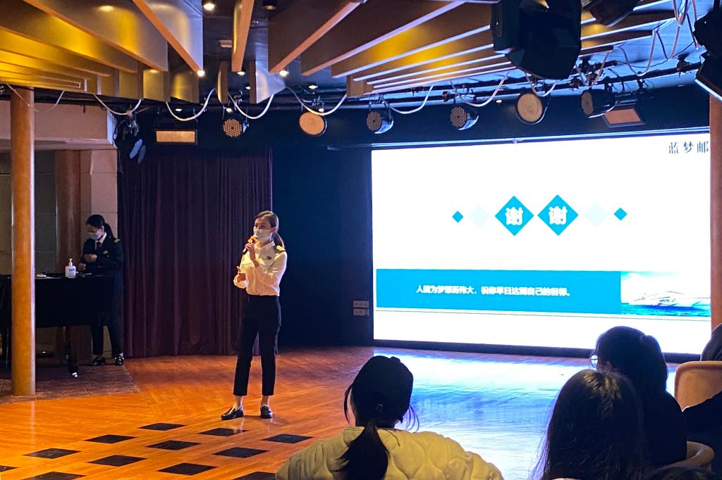 船方还精心组织举办了“船员交流会”。交流会上,邮轮管理人员及普通船员向同学们分享了自己的工作经验,让大家了解了邮轮内不同部门组织结构设置及岗位工作职责,现场气氛热烈。