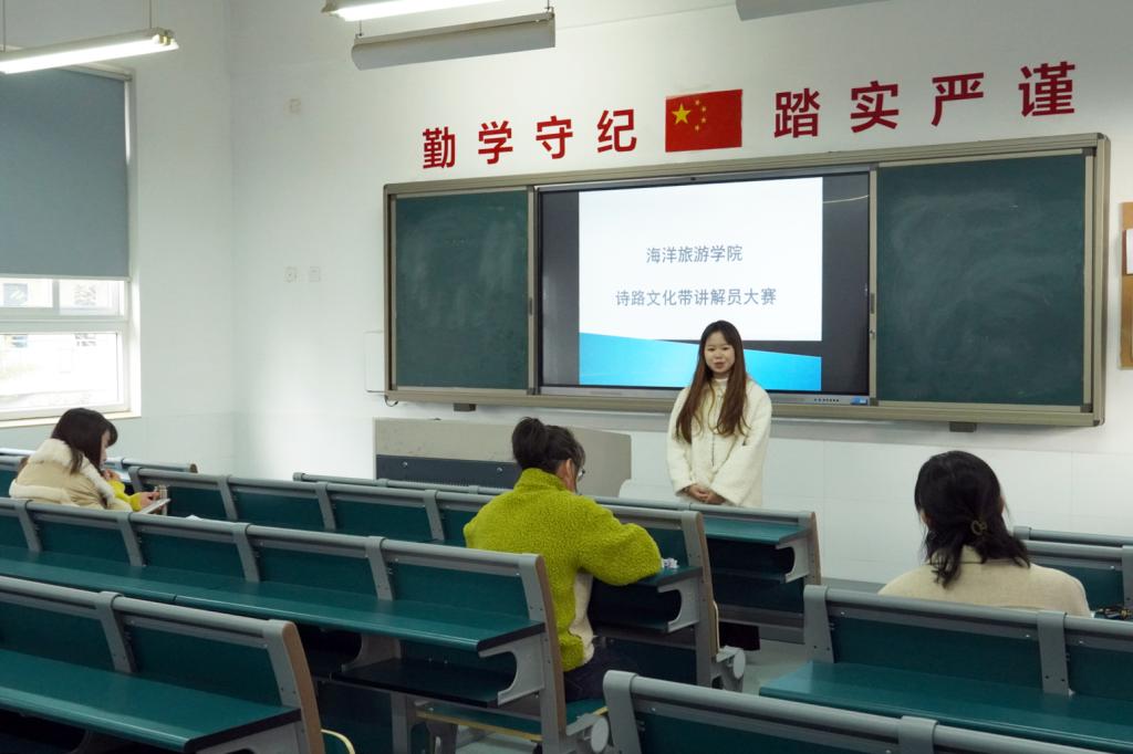 为贯彻学校第十四届学生技能(学科)竞赛组委会关于深化学校教育教学成果,秉持以赛促教、以赛促练的指导思想,坚持“提质培优、争先创优”原则,近日,海洋旅游学院成功举办“诗路文化带讲解员”比赛。本次比赛由国际邮轮领队专业团队组织,分理论知识上机考试和现场讲演两个部分。
