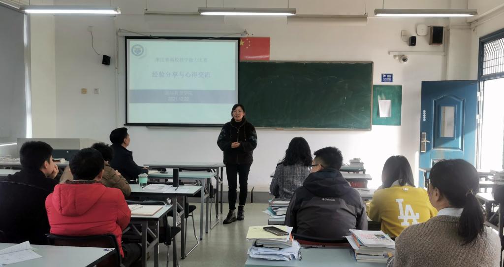 为进一步提高教师教学业务能力与水平,鼓励引导教师积极参与课程教学改革,聚焦课堂,探索有效的教学途径和教学方法,同时为教师参加下一届校级、省级教学能力比赛做准备,12月22日下午,国际教育学院在1406教室开展了“教师教学能力比赛”经验分享活动。活动由省第十二届高校青年教师竞赛一等奖获得者邵瑶和省高职院校教学能力比赛三等奖获得者舒凯跃、张丽娜主讲,学院教学副院长颜天明主持,学院全体教师参加。