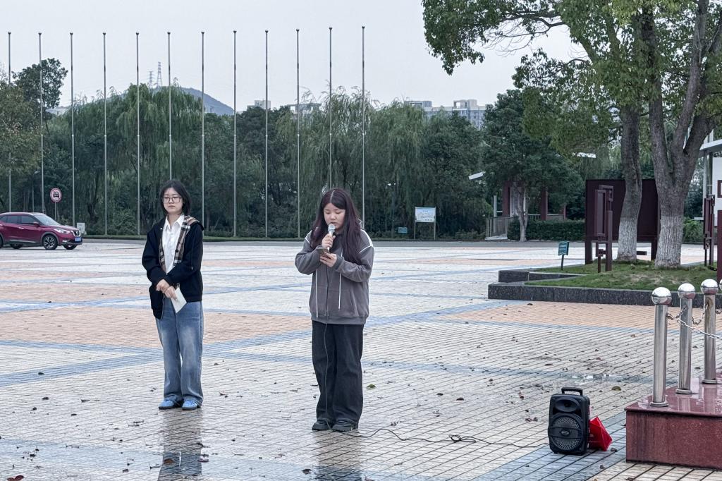 升旗仪式后,学院团委学生会主席团成员张荧娜进行国旗下讲话。她以“守护校园安全,筑牢消防防线”为主题,结合日常生活场景,深入剖析了常见消防隐患的危害,并号召大家将消防知识内化为日常必备技能,共同守护校园安全。