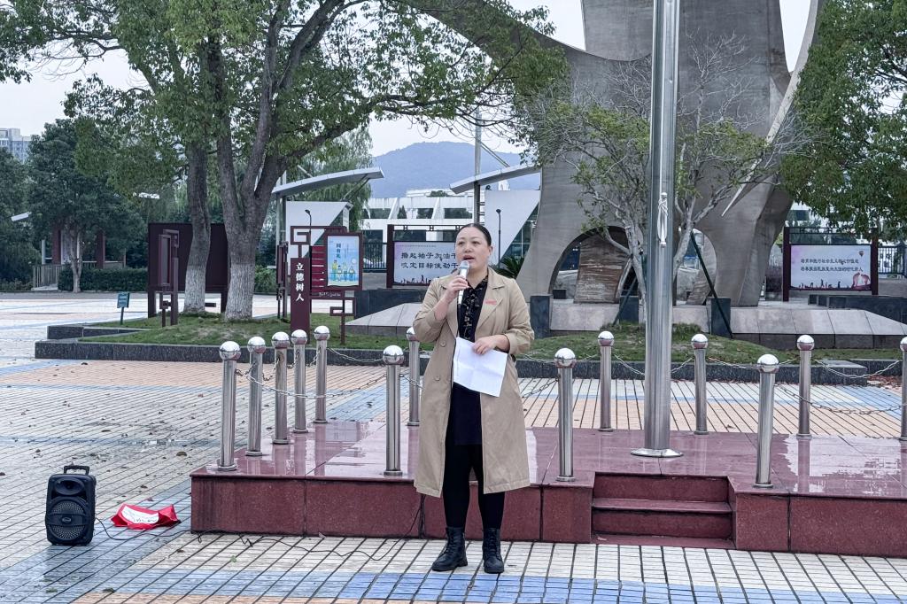 仪式最后,学院党总支副书记虞艳娜老师作总结发言。她首先结合近期学校及学院实际案例,通报了电信网络诈骗的新型手段、学生违纪违规的典型情况,以“案例警示”的方式提升学生安全防范意识。随后,她围绕消防安全月、爱国卫生月、劳动教育月等专项工作,以及学校学生管理“三个专项”整治行动、等级平安校园建设要求,从交通安全、消防安全、防范电信网络诈骗、晚就寝管理等方面开展全方位安全教育,要求同学们自觉遵守校纪校规,养成良好的劳动和生活习惯,提高防诈意识,共同守护校园安全。