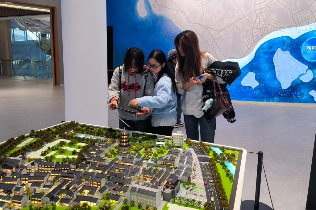 最让同学们兴奋的是馆内的高科技互动装置。通过数字沙盘,同学们身临其境地领略了舟山群岛2万多平方公里的蓝色国土;“千岛探秘”体感游戏和触屏创意互动装置则让大家在玩乐中感受到海岛的独特魅力。武雅娇老师在参观过程中,不时结合展馆内容为同学们讲解舟山的发展战略:“从传统渔业城市到海洋经济强市,再到国际海岛休闲旅游目的地,舟山的每一步转型都离不开对自身资源的精准定位。大家要学会从城市发展中找专业切入点,思考文旅产业如何助力海岛振兴。”