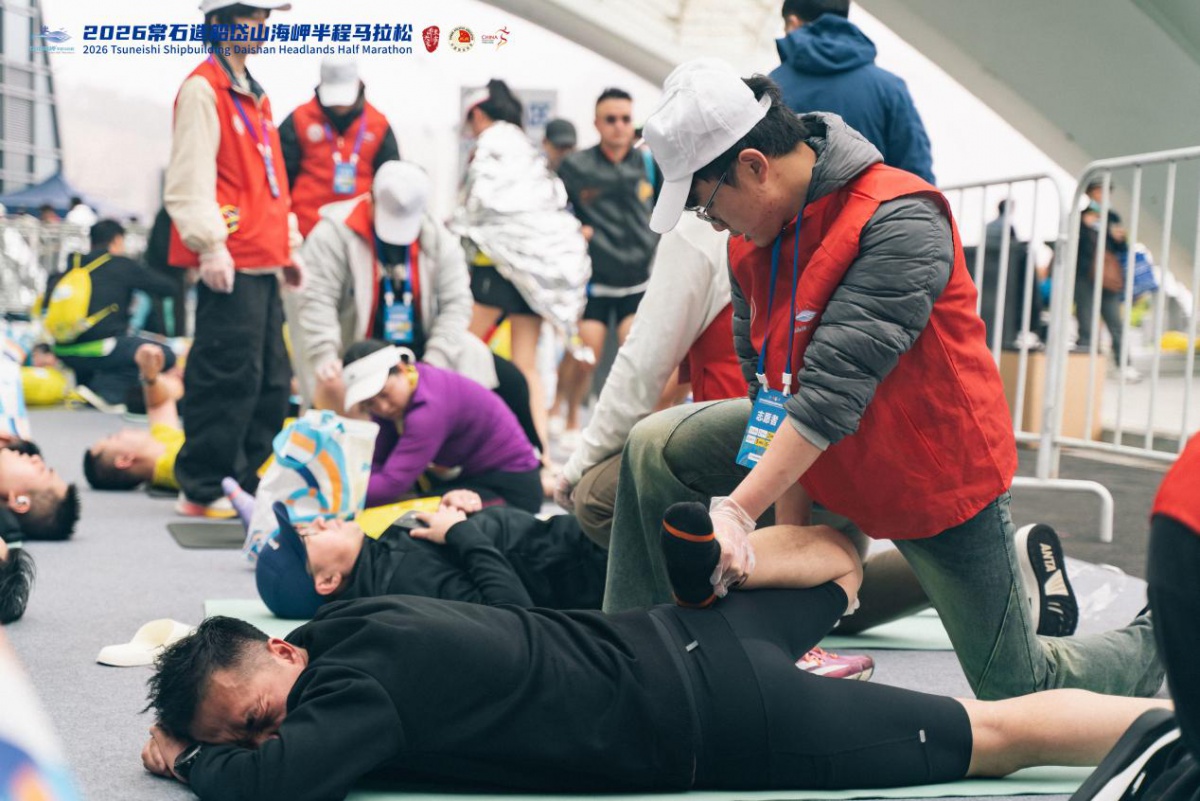 凌晨五点,天色未亮,志愿者们已整装集结、准时出发,统一乘车奔赴赛事各点位。从物资分发、赛道补给,到起点引导、终点拉伸,大家被科学分配至关键岗位,分工明确、高效协作。学校“启航救护队”组建的医疗志愿组,凭借规范急救技能与贴心细致服务,全程守护选手安全,成为赛道上可靠的“生命守护者”。