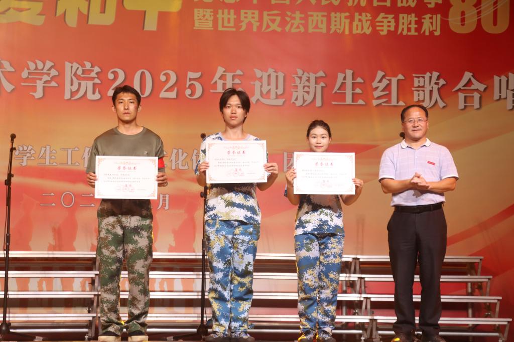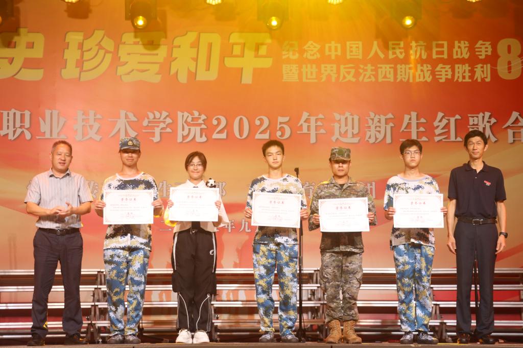 为纪念中国人民抗日战争暨世界反法西斯战争胜利80周年,引导青年学生厚植家国情怀、增强历史责任感与时代使命感,9月26日,我校在田径场举行“铭记历史 珍爱和平”2025年迎新生红歌合唱比赛。校党委书记蔡志军,校党委副书记孔志光,校党委委员、副校长曹志斌等校领导,各二级学院党政负责人及全体2025级新生共同观看比赛,张龙燕、周勤等5位教师担任评委。