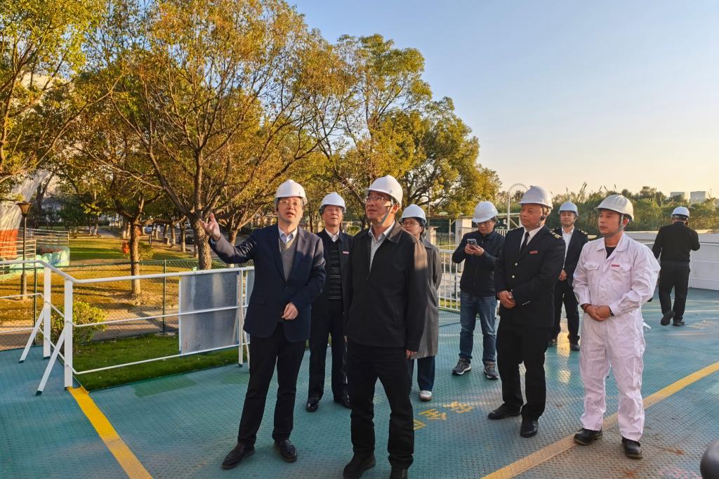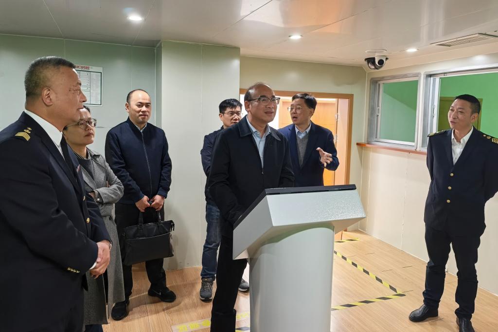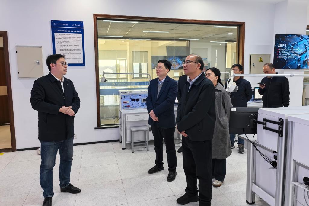 张立军副厅长参观了我校航海操纵模拟器、国家级现代航运虚拟仿真实训中心、数字孪生(PLC)实训室和航海艇筏训练基地等,对我校在改善提升学生实训条件上的努力表示认可。