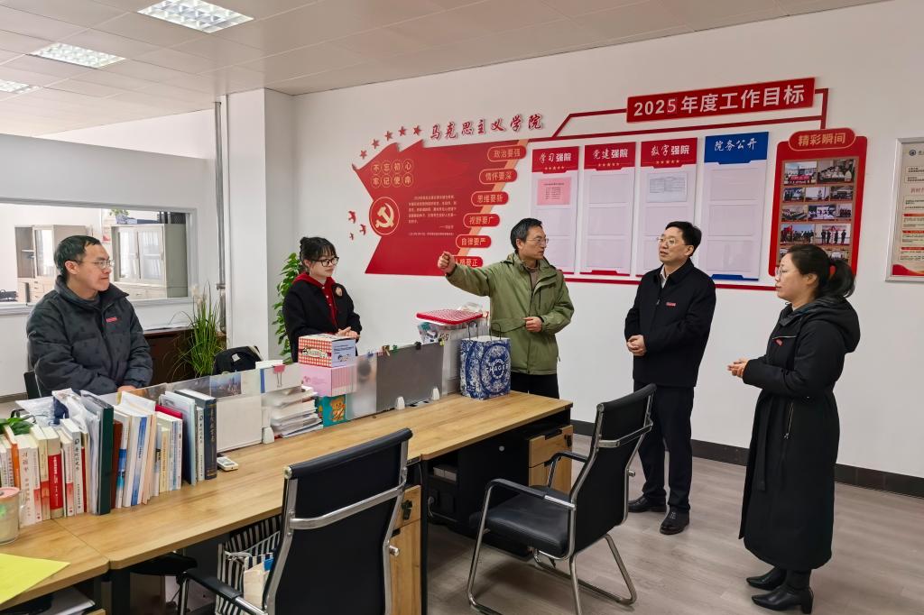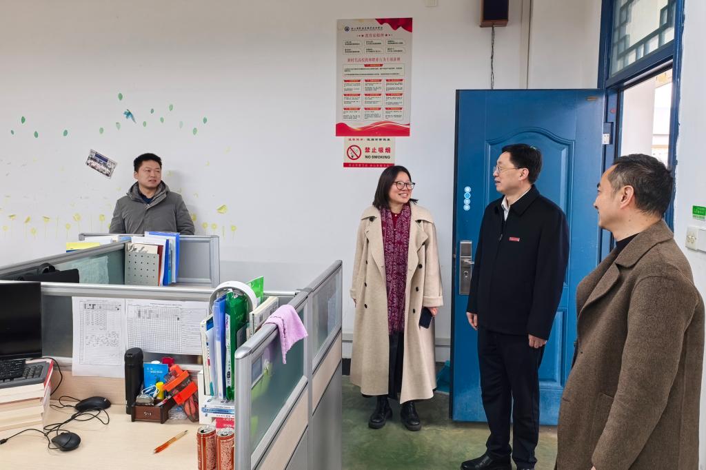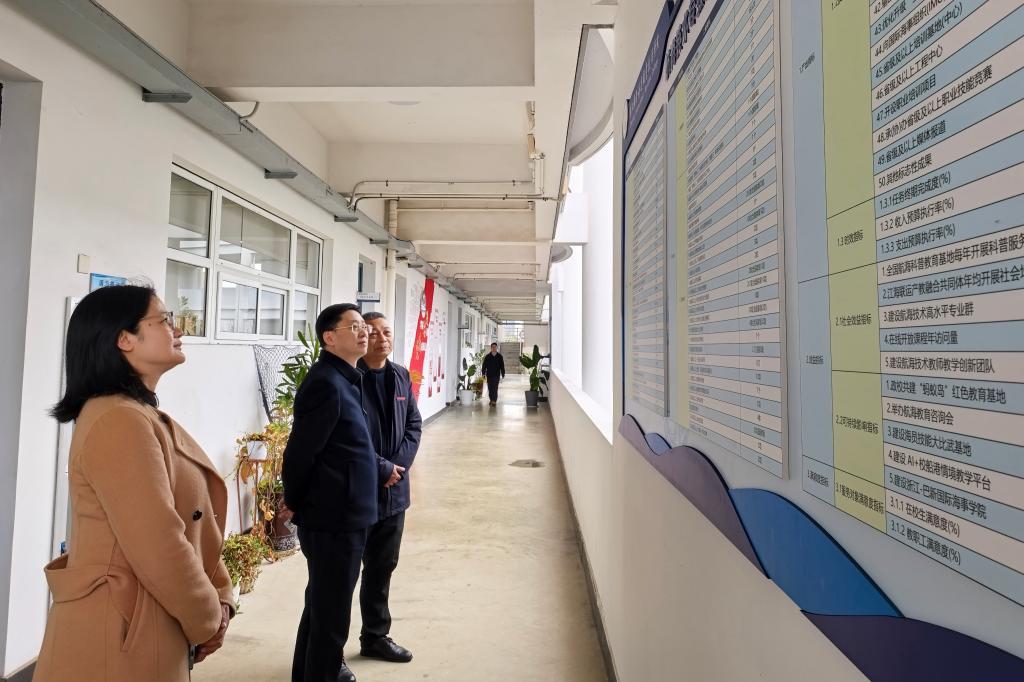 3月4日,教职工返校第一天,校党委书记蔡志军带队走访了各二级学院、部门,实地督导开学前各项准备工作。