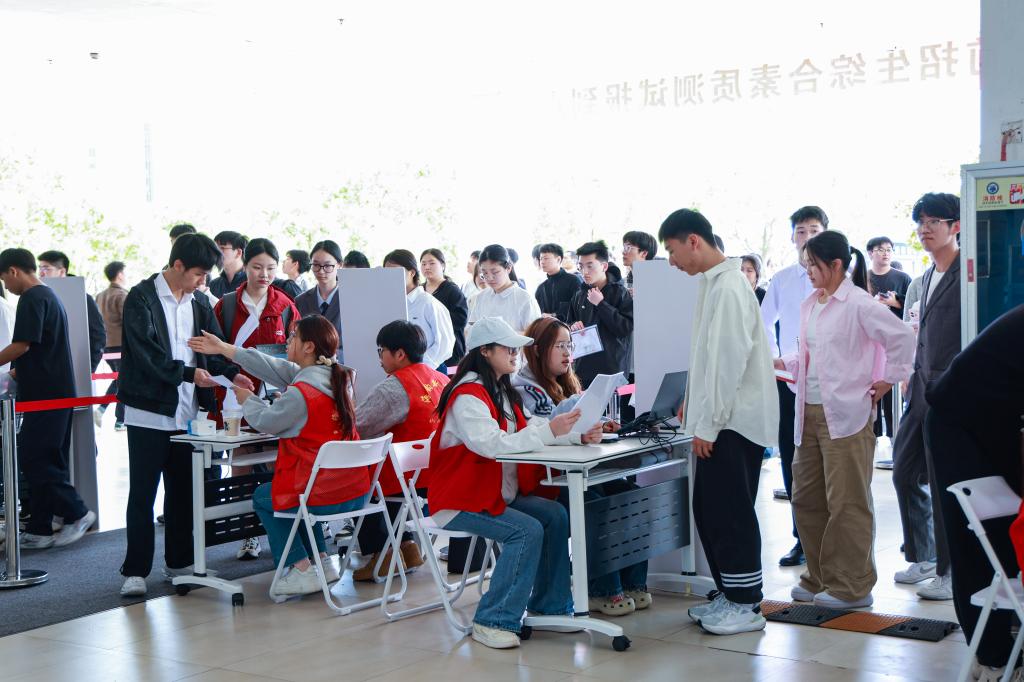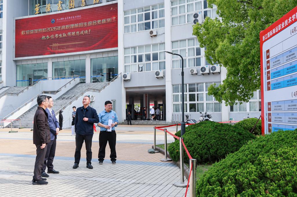 4月25日,我校2026年高职提前招生综合素质测试在新城校区如期顺利举行。来自全省各地的1258名考生怀揣技能梦想参加测试,考场秩序井然,考风考纪良好。校党委书记蔡志军,校党委副书记、校长吴中平深入考场一线巡查指导,校党委副书记孔志光,校领导曹志斌、李丽、史方敏、赵晖分别负责场外与场内统筹协调工作。