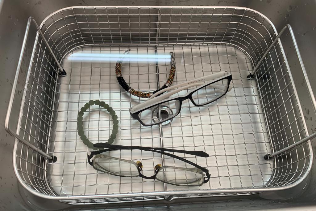 因岱山校区地处偏僻,同学们不便出校清洗眼镜,石油化工学院志愿服务队从小事出发,力所能及地为同学们做实事、办好事,利用超声波清洗机为同学们清洗眼镜、首饰等。