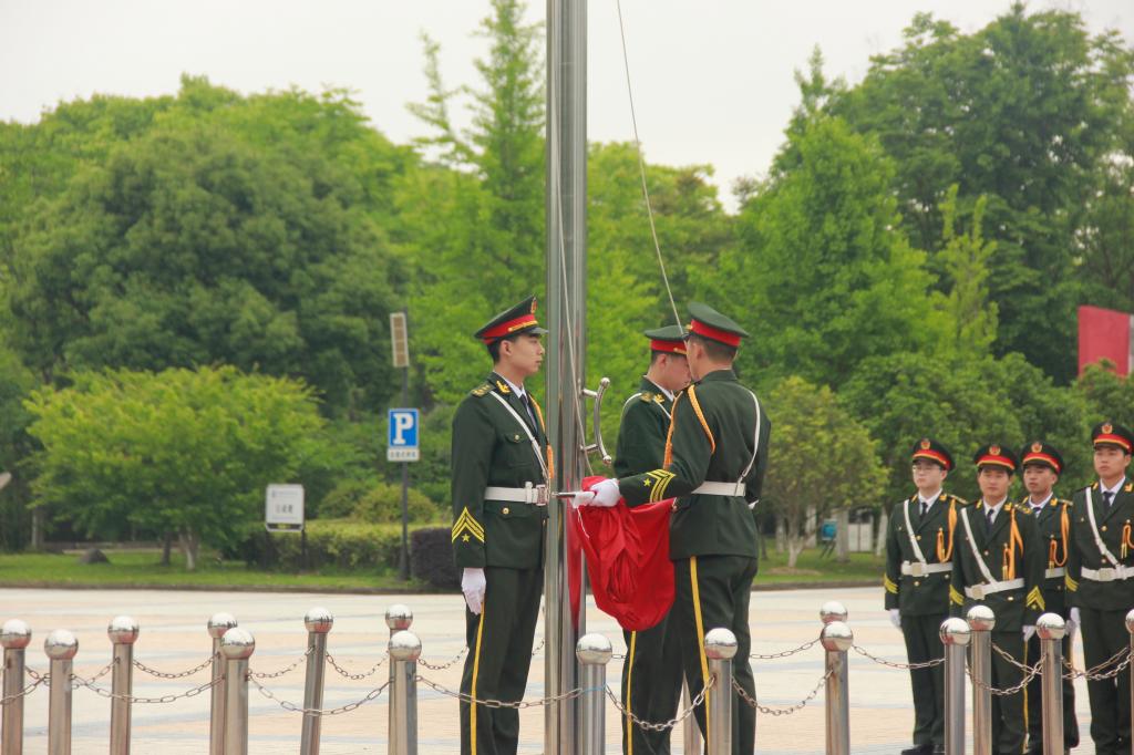 鲜艳的五星红旗伴随着庄严的国歌中缓缓升起,全体师生精神振奋、庄严肃穆,向缓缓升起的五星红旗行注目礼,向伟大的祖国致以崇高的敬意。