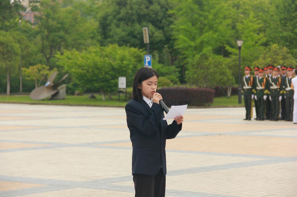 接着,2019级商务英语1班郑琦同学代表港口管理学院全体学生在国旗下发表了《学党史、感党恩,重温百年党史》的倡议,她倡议全体港口青年一要知史爱党、知史爱国,认真研读党史经典名篇,学好、讲好党的故事、革命的故事、英雄的故事,让红色基因、革命薪火代代传承;二要学唱颂党歌曲、讲述红色故事、完成红色寻访、学习先锋榜样,学党史、感党恩、听党话、跟党走;三要学史增信、学史力行,践行初心使命,争做海运的高素质接班人。