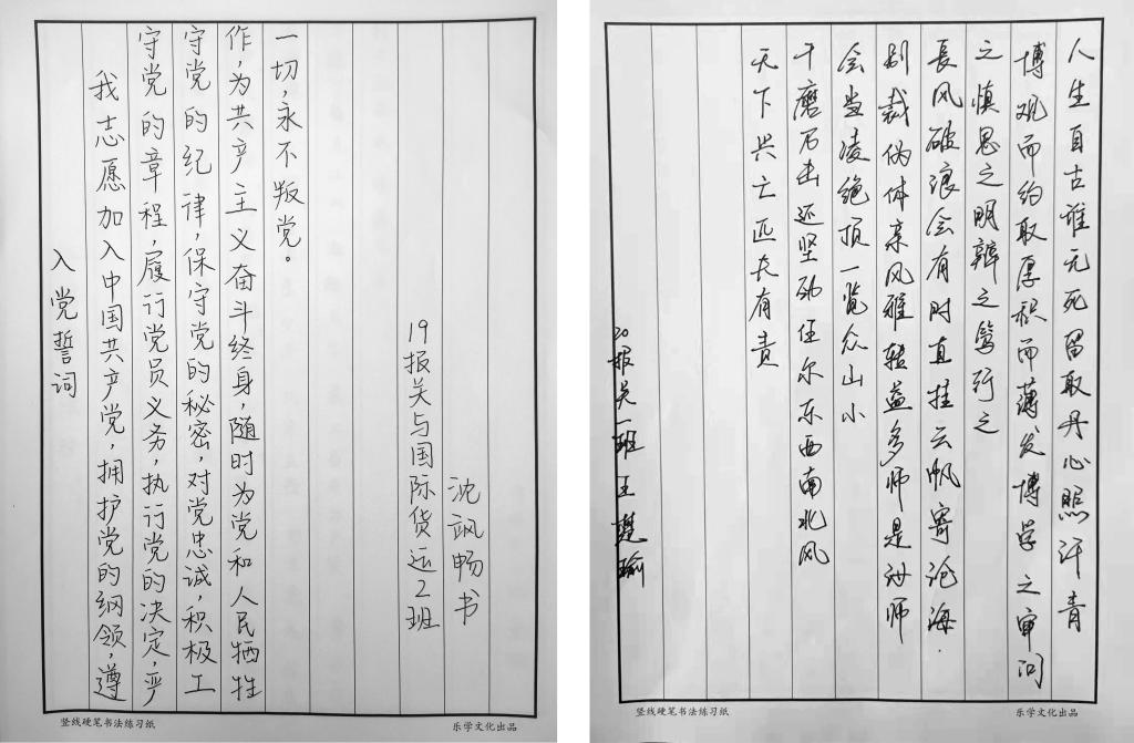 为庆祝中国共产党成立100周年,深入学习贯彻习近平总书记在党史学习教育动员大会上的重要讲话精神,讴歌习近平新时代中国特色社会主义思想的伟大实践,唱响主旋律,弘扬正能量,坚定文化自信,4月28日-29日,港口管理学院开展了“庆党一百周年,传扬红色经典”书写大赛活动,学院2019级、2020级在校生以及教师参加了活动。