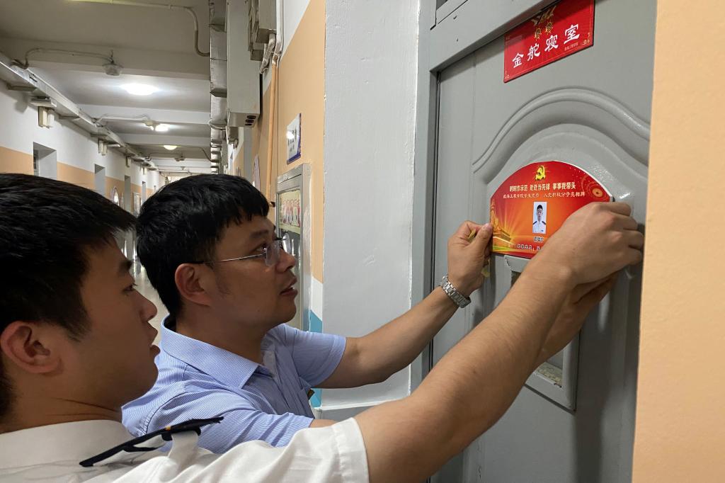 航海工程学院党总支书记李刚介绍了本次活动的内容、意义及期许,希望党员教师深入到学生中去,将工作做实,积极发挥党员模范先锋作用。航海工程学院院长汪益兵、党总支书记李刚分别为结对党员师生颁发助寝寝室亮相牌。随后,由党员教师和结对的入党积极分子共同挂牌。