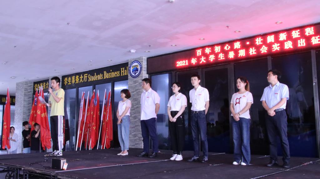 7月2日,学校2021年暑期社会实践活动出征仪式在图书馆一楼举行。校团委书记金洁、各二级学院党总支副书记、分团委书记(负责人)、暑期社会实践指导教师和学生代表等近100余人参加出征仪式。