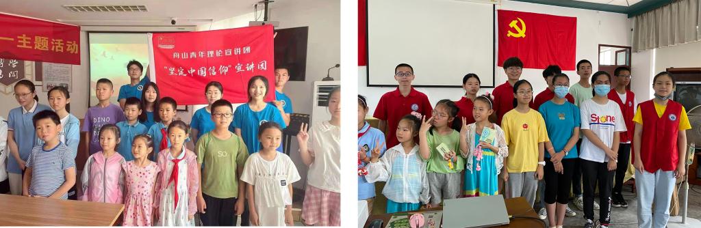 为推动党史学习教育走深走实,7月初,校团委组织青年大学生实地走访舟山蚂蚁岛,切身体悟蚂蚁岛的发展历史,学习和弘扬“艰苦创业、敢啃骨头、勇争一流”的蚂蚁岛精神。同时充分发挥大学生朋辈宣讲优势,围绕蚂蚁岛精神由来、三八海塘和两艘大捕船的故事、癞头山变美丽岛、海岛巾帼力量、军港之夜创作背景等主题,精心创作打磨宣讲作品12件,把舟山蚂蚁岛的奋斗故事送到群众身边。通过“文艺+宣讲”的方式,突出“从小故事体现大道理”,使宣讲既有深度,又有温度,让群众喜欢听、听得懂、听到心坎里。