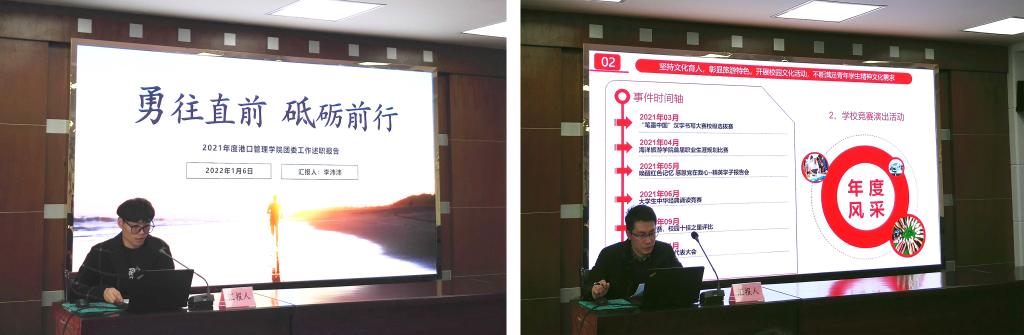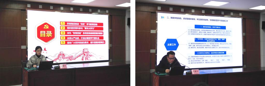 随后,各二级学院分团委书记(负责人)围绕学院团委年度工作开展情况、完成情况和在引领凝聚青年、组织动员青年、联系服务青年等方面开展的工作进行述职,实事求是地总结了经验,展现了各二级学院好的做法,也认真查摆分析了存在的问题,并提出了新的工作思路。