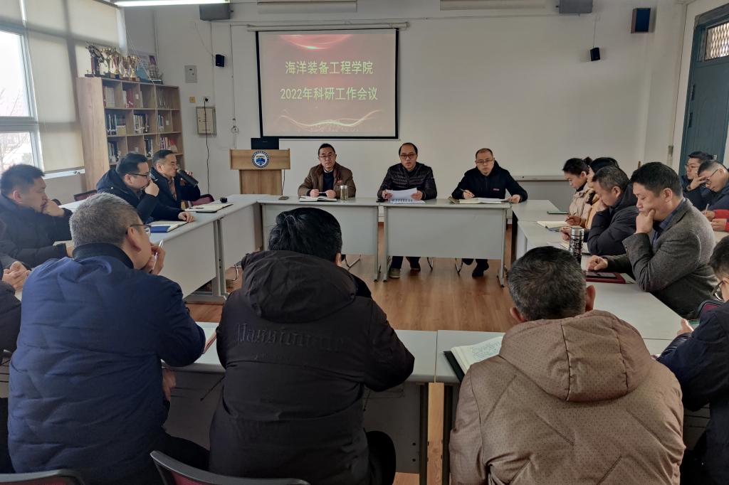 1月11日上午,海洋装备工程学院在海智楼1312会议室召开了2022年度科研工作会议。科研与合作处处长郭飞军、学院各科研平台成员教师参加了会议,会议由学院院长李海波主持。