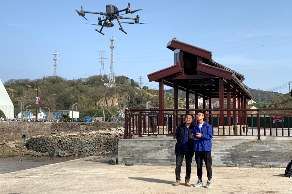 推动小岛数字化改革,助力现代海洋城市建设,3月24日,海洋装备工程学院无人机应用技术专业师生一行2人协同校友企业舟山慈航智能科技有限公司专业飞手,赴普陀区虾峙镇金钵盂岛、泥湖山岛、东白莲山岛多个偏远海岛开展无人机海岛倾斜摄影测量三维实景建模和施工区域无人机影像数据采集。