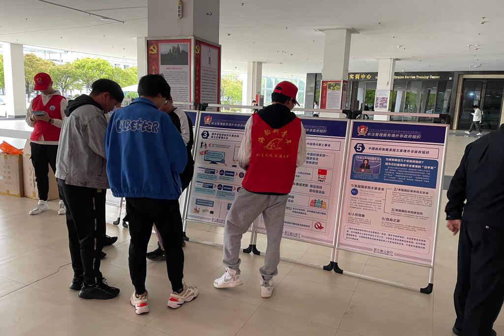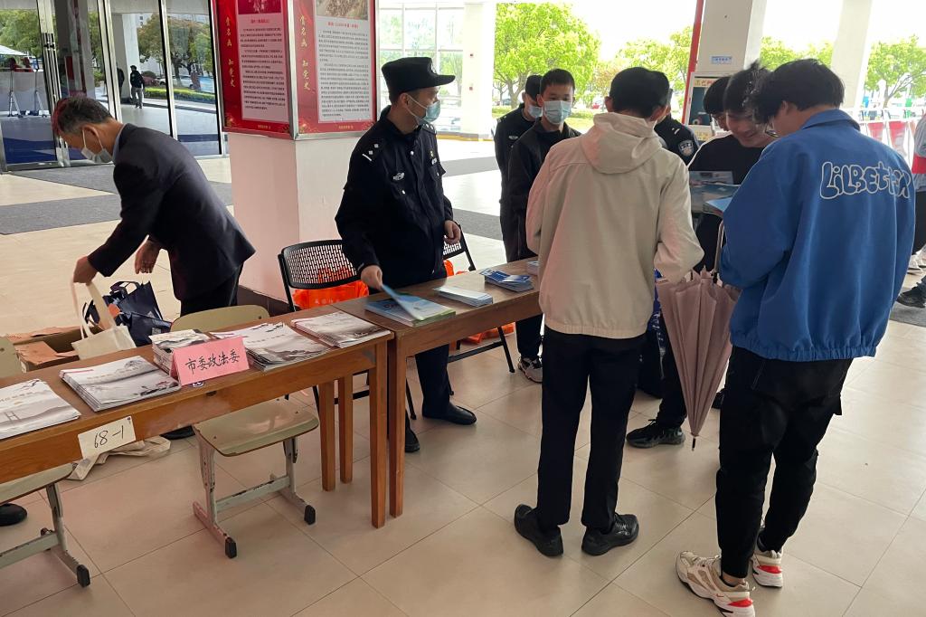 在图书馆一楼大厅活动现场,舟山市公安局民警与校保卫工作部的老师一起,向师生派发了防诈骗、反恐防恐的宣传单,以展板和口述的形式,提醒师生提高警惕,不轻信陌生电话和短信,不要向陌生人泄露个人信息,更不要因贪图小利而陷入诈骗分子的陷阱,注意防范各类网络诈骗,提高反恐防恐意识。