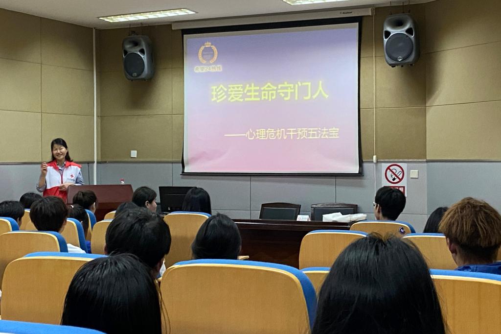 5月16日,我校后勤产业处校红十字会联合学生处心理健康教育中心在船舶实训楼万邦厅开展了心理急救培训讲座。