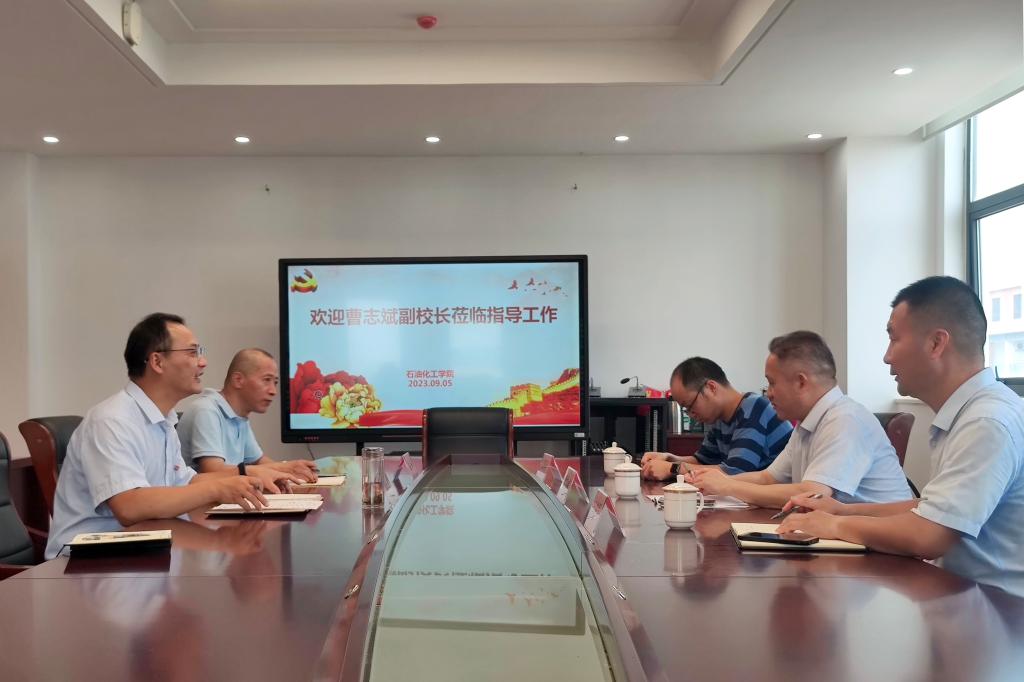 曹志斌副校长听取汇报后,充分肯定了石油化工学院近期的各项重点工作,并对岱山校区下一步基本建设工作提出了要求:一是基础设施建设是学院发展的根基,在下一步的工作中要进一步推进校园科学化、智能化建设,保障校园正常、高效运行;二是要把握职业教育发展机遇,加强合作交流,促进重点项目加快落地实施。(石油化工学院)