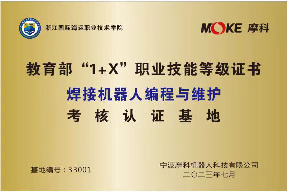 近日,我校被教育部1+X“焊接机器人编程与维护”职业技能等级证书的培训评价组织宁波摩科机器人科技有限公司授予1+X职业技能等级证书“焊接机器人编程与维护”考核认证基地,并荣获“优秀试点院校”称号,以表彰我校在1+X试点推进工作中所作出的突出贡献。