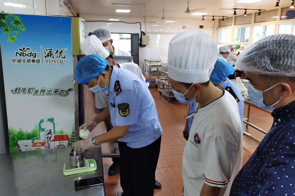 检查组分3个小组,分别实地查看了学校食堂的就餐区、烹饪间、切配间、消毒间、主副食仓库等场所,重点检查了清洁卫生、食品留样、生熟食分开储存、灭蝇灯设置、食材保质日期等情况,并就相关准备工作和操作细节进行了询问。