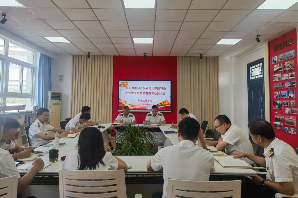 9月18日下午,航海工程学院党总支在海慧楼309会议室召开学习贯彻习近平新时代中国特色社会主义思想主题教育动员大会。学院党总支班子、支部书记和专业团队负责人参加会议,会议由学院党总支书记李刚主持。