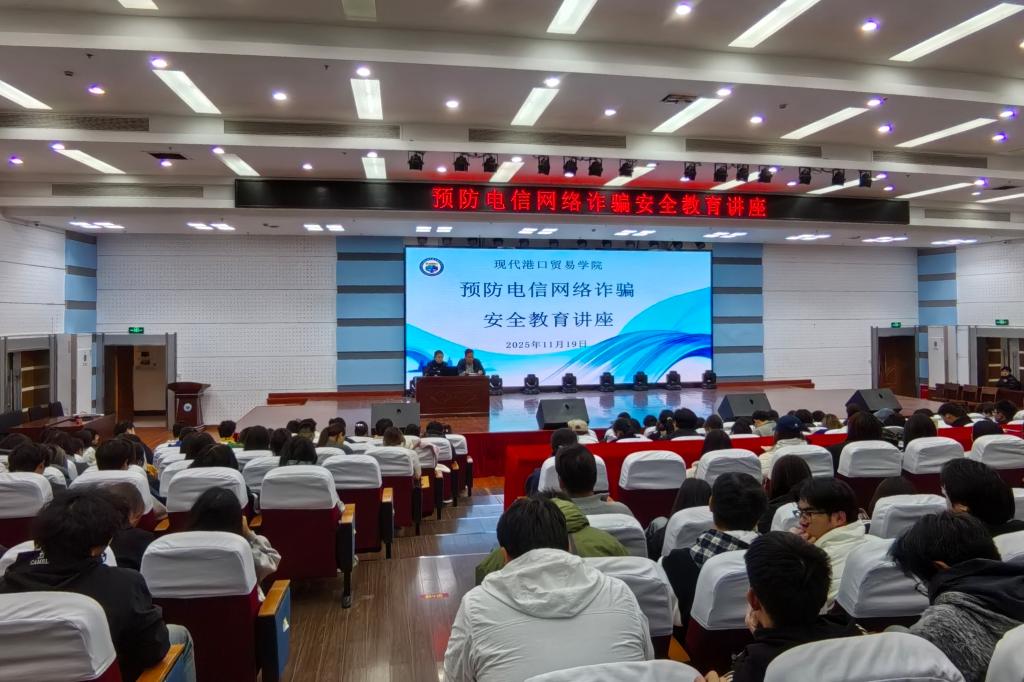 为切实增强学院师生的反诈防骗意识,有效防范校园电信网络诈骗案件发生,11月19日,现代港口贸易学院邀请辖区派出所民警走进校园,在图书馆四楼报告厅举办了预防电信网络诈骗安全教育讲座。学院党总支书记李刚主持活动。