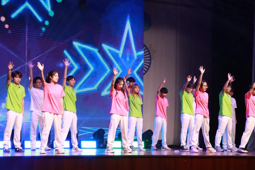 第二篇章“逐梦征程”中,音悦社的《我们的明天》唱出青春憧憬;舞蹈《凑热闹》节奏明快、气氛热烈;歌舞串烧《Whiplash+No Doubt》活力全开,彰显多元艺术风格;学校舞蹈团的《爱》则以柔美舞姿传递温暖力量。