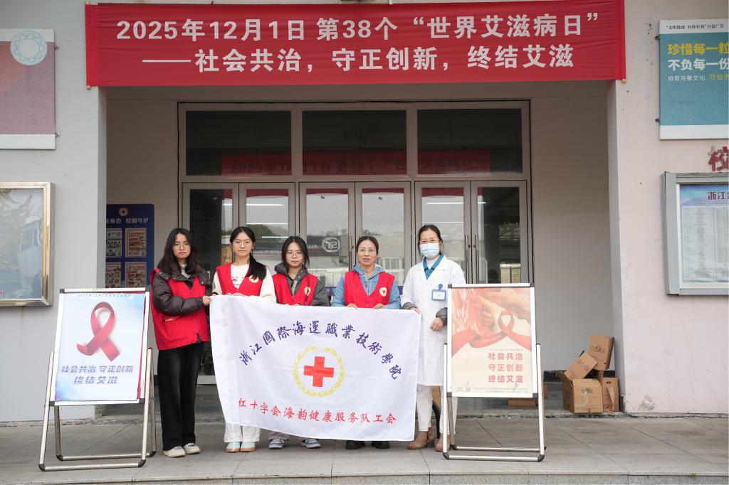 2025年12月1日是第38个世界艾滋病日。当天中午,由校红十字会携手校团委共同主办的“社会共治,守正创新,终结艾滋”主题现场宣传活动在学生食堂北广场一楼顺利开展。活动旨在普及艾滋病防治知识,增强全校师生的健康意识和自我保护能力,营造携手防艾、共担健康责任的校园氛围。