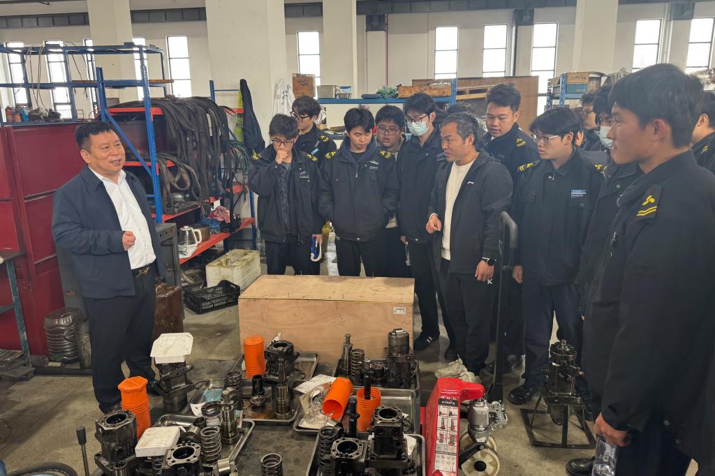 12月8日,实践教学活动再度开展。冯兴全、傅光杰老师带领2024级轮机2班学生走进实践中心,开展船舶辅机课程的现场教学。此次教学特别邀请轮机工程技术专业产业教授王国锋全程参与授课,王国锋教授结合自身丰富的行业一线从业经验,将抽象的专业理论与实际船舶辅机操作场景相结合,用生动的行业案例解读技术要点,助力课堂教学提质增效,让学生直观感受行业岗位需求与技术标准。
