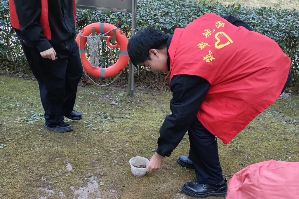 活动现场,20名大一大二志愿者分工协作、热情投入。大家手持垃圾夹、环保袋等工具,重点清理河道边缘、岸边草丛、垃圾桶周边的烟头、纸屑、塑料杂物等垃圾,细致排查卫生死角,做到“全覆盖、无遗漏”。同时,志愿者向过往同学普及河道保护知识,解答环保疑问,引导大家树立“护河有责”的理念,累计吸引100余名同学驻足参与互动。