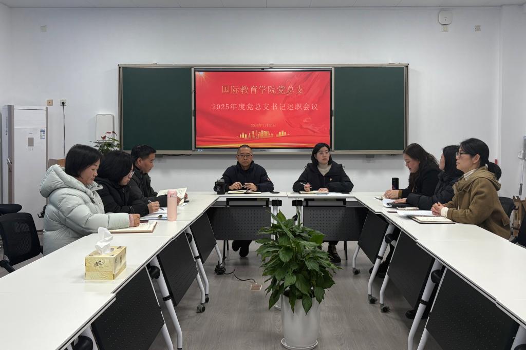 1月30日,国际教育学院党总支召开2025年度党支部书记述职会议,全面检验党支部工作成效,压实党建工作政治责任,推动学院党建工作与中心工作深度融合。学院党总支书记金洁主持会议,党总支委员、各支部委员参加会议。