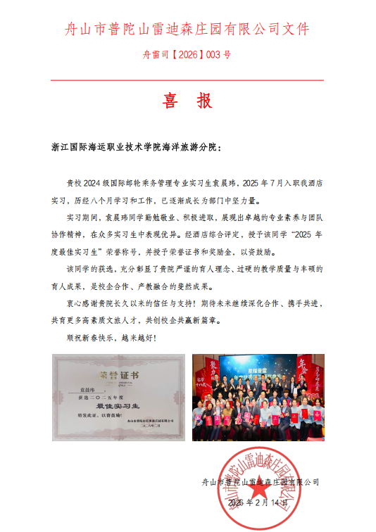 3月15日,海洋旅游学院2026届毕业生岗位实习工作画上了圆满的句号。在过去的数月里,四百余名学生走出校园,深入舟山、宁波、杭州、上海等地70余家知名企业一线,将课堂所学理论知识与岗位实践深度融合,交出了一份亮眼的“实习答卷”。其中,245名学生留舟开展专业实习,占学院实习总人数的56.58%,这是学校与城市发展“同频共振”,“立足舟山、服务舟山”办学定位的直接体现,是我校服务地方经济发展的生动答卷。
