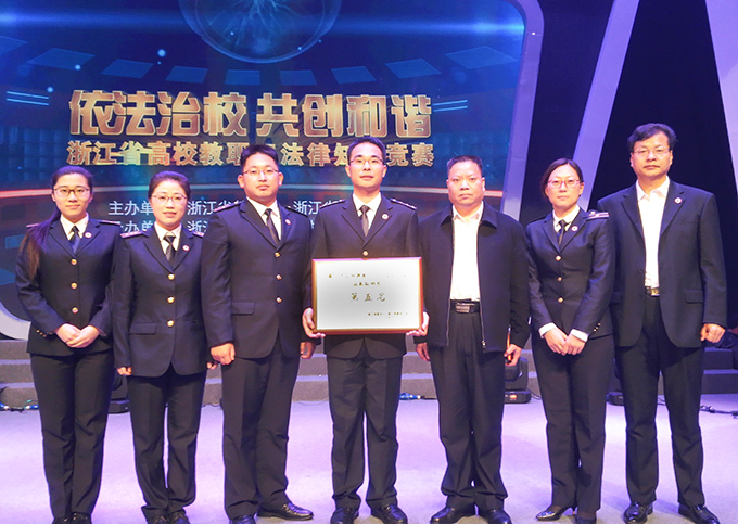 12月1日,由省教育厅和省教育工会联合举办的浙江省高校教职工法律知识竞赛总决赛在浙江工商大学举行,我校由苏峰、邓青勇、徐徐、刘笑菊和朱希天纯等5人组成的教职工代表队经过激烈角逐,获得了全省高职组第五名的佳绩。